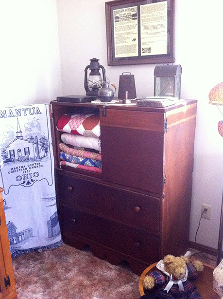 Quilt storage from repurposed antique furniture