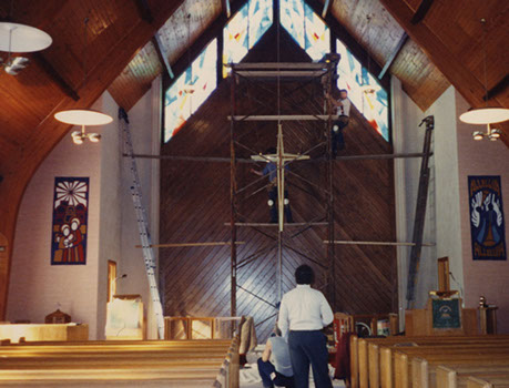 Rehanging cross after creating herringbone paneling backdrop